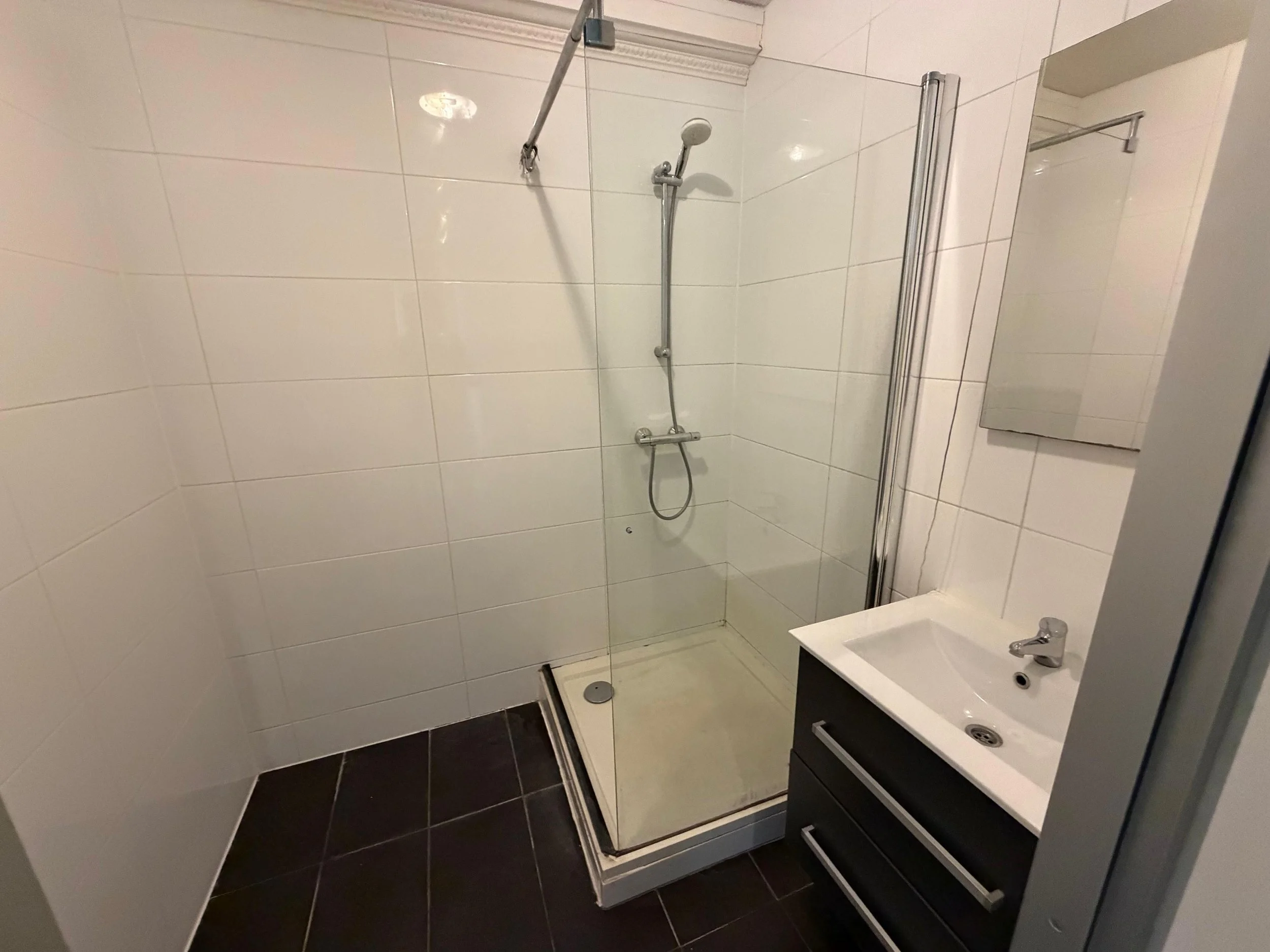 De badkamer is uitgerust met douche, wastafel en aansluitingen voor een wasmachine en droger. Het toilet is separaat en bevindt zich eveneens in de hal. Daarnaast is er een handige bergkast voor extra opbergruimte.