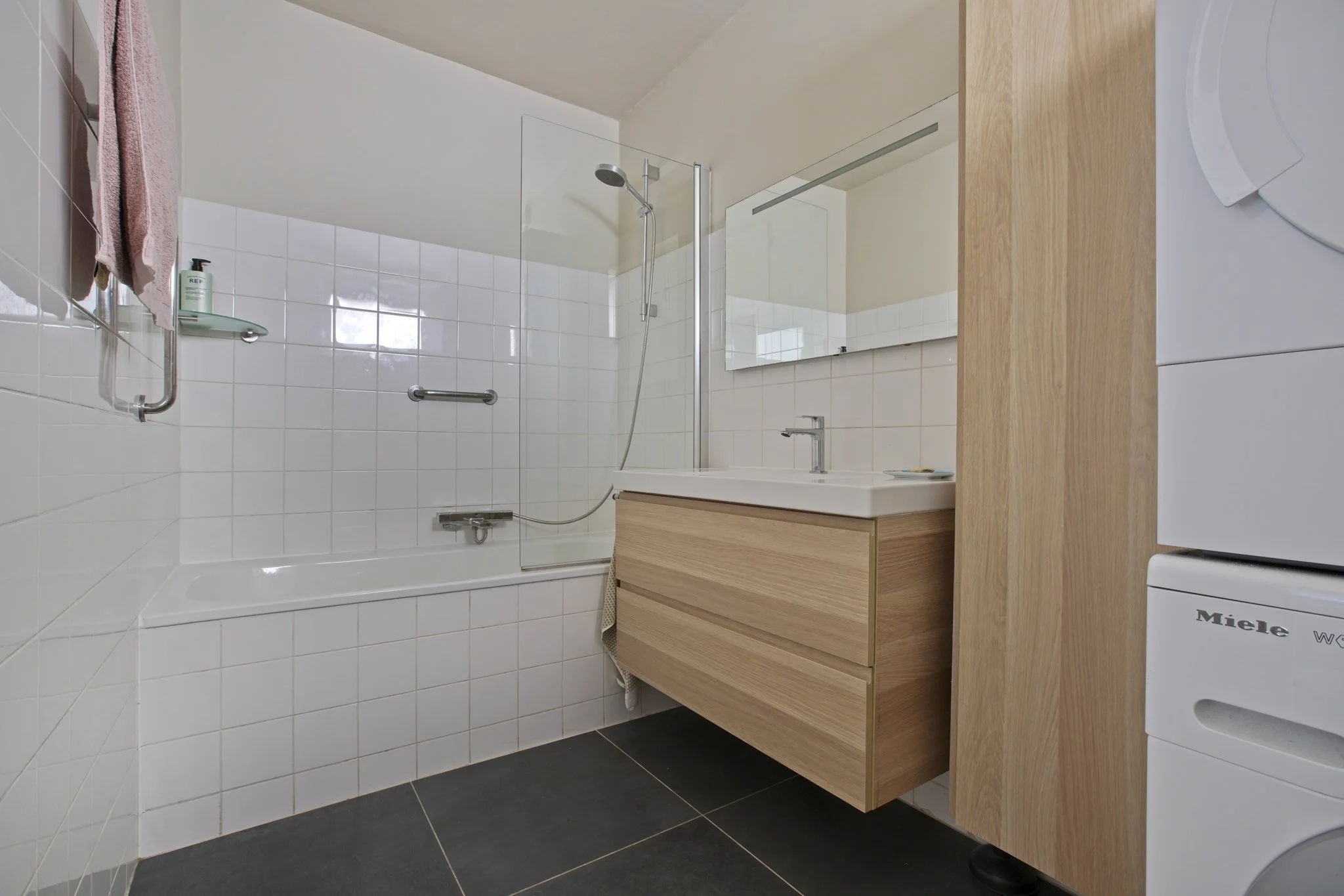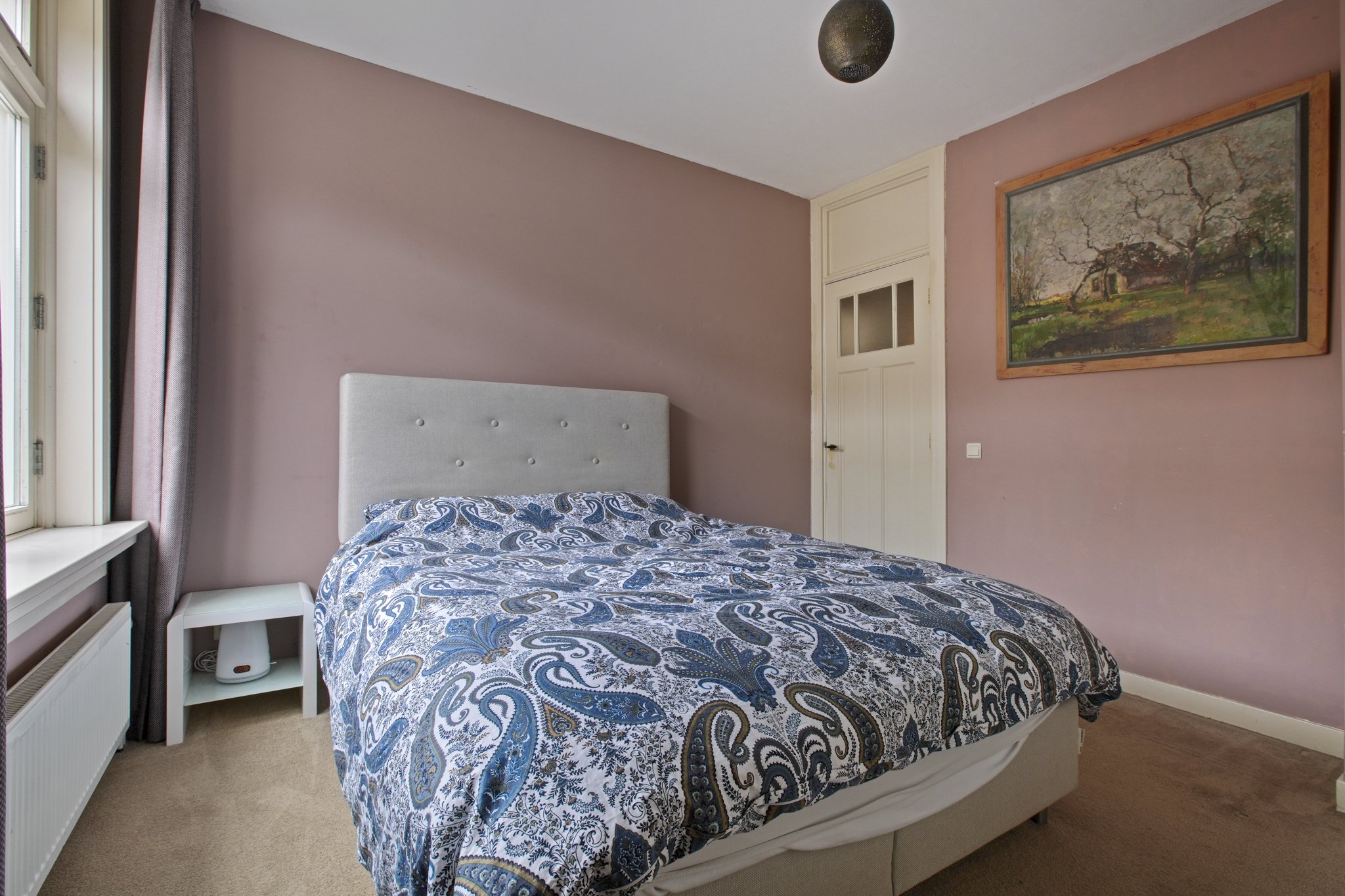 De slaapkamer is rustig gelegen en biedt voldoende ruimte voor een comfortabel tweepersoonsbed én een ruime kledingkast. De badkamer en-suite is voorzien van een ligbad en een badkamermeubel met wastafel.