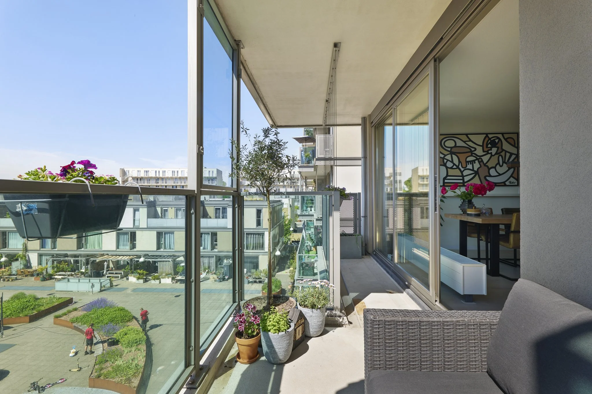 - Zonnig balkon op het zuiden van ruim 10 m² met uitzicht op een rustige binnentuin