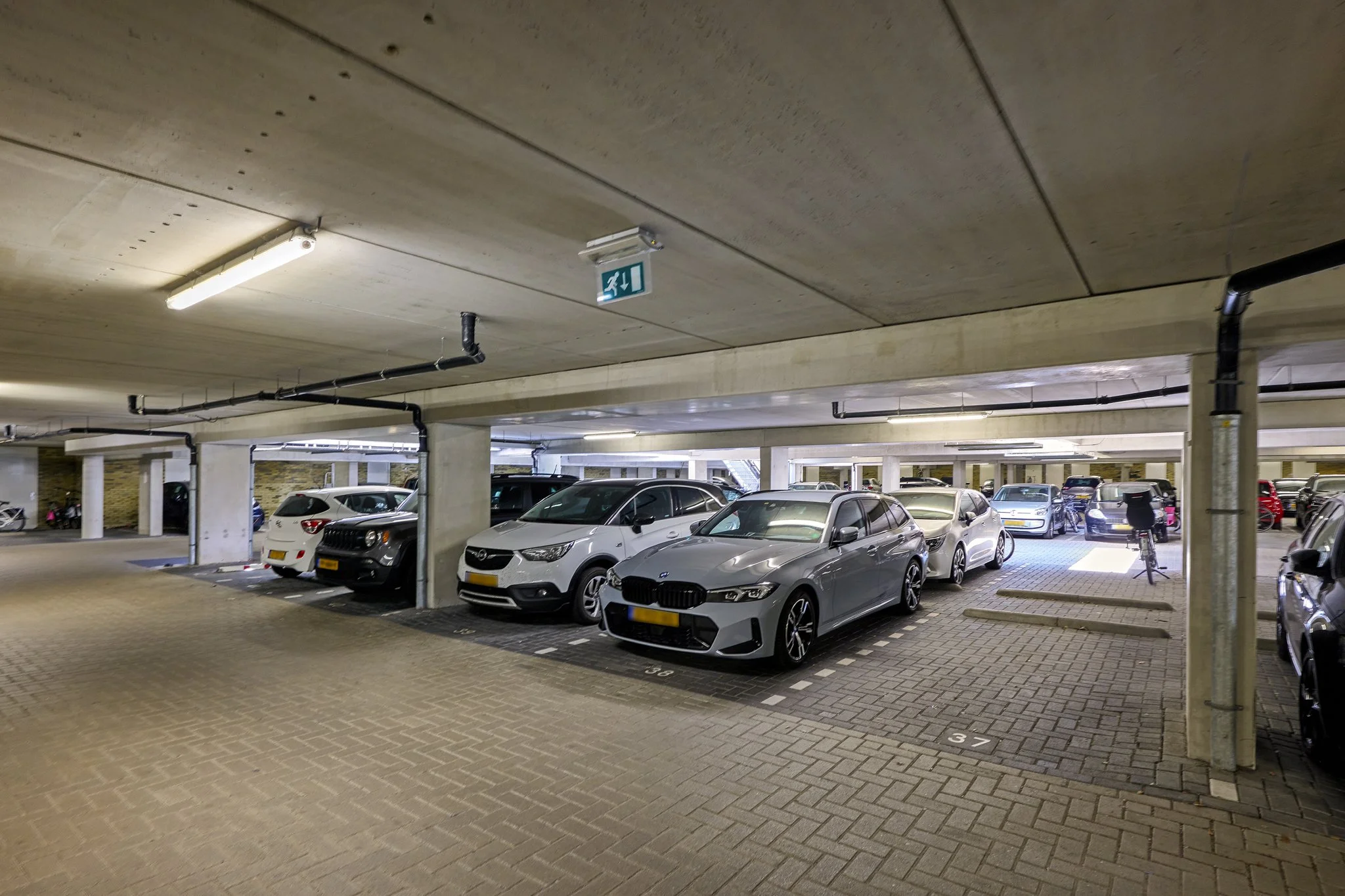 Bij het appartement hoort een parkeerplaats in de afgesloten parkeergarage. Deze wordt beheerd door een aparte VvE; de bijdrage hiervoor is € 40,84 per maand. Er is een huishoudelijk reglement en extra parkeerplekken zijn (indien beschikbaar) te huur. Op initiatief van bewoners wordt gewerkt aan de aanleg van laadpunten voor elektrische auto's. De kosten hiervan zijn voor rekening van de gebruikers.