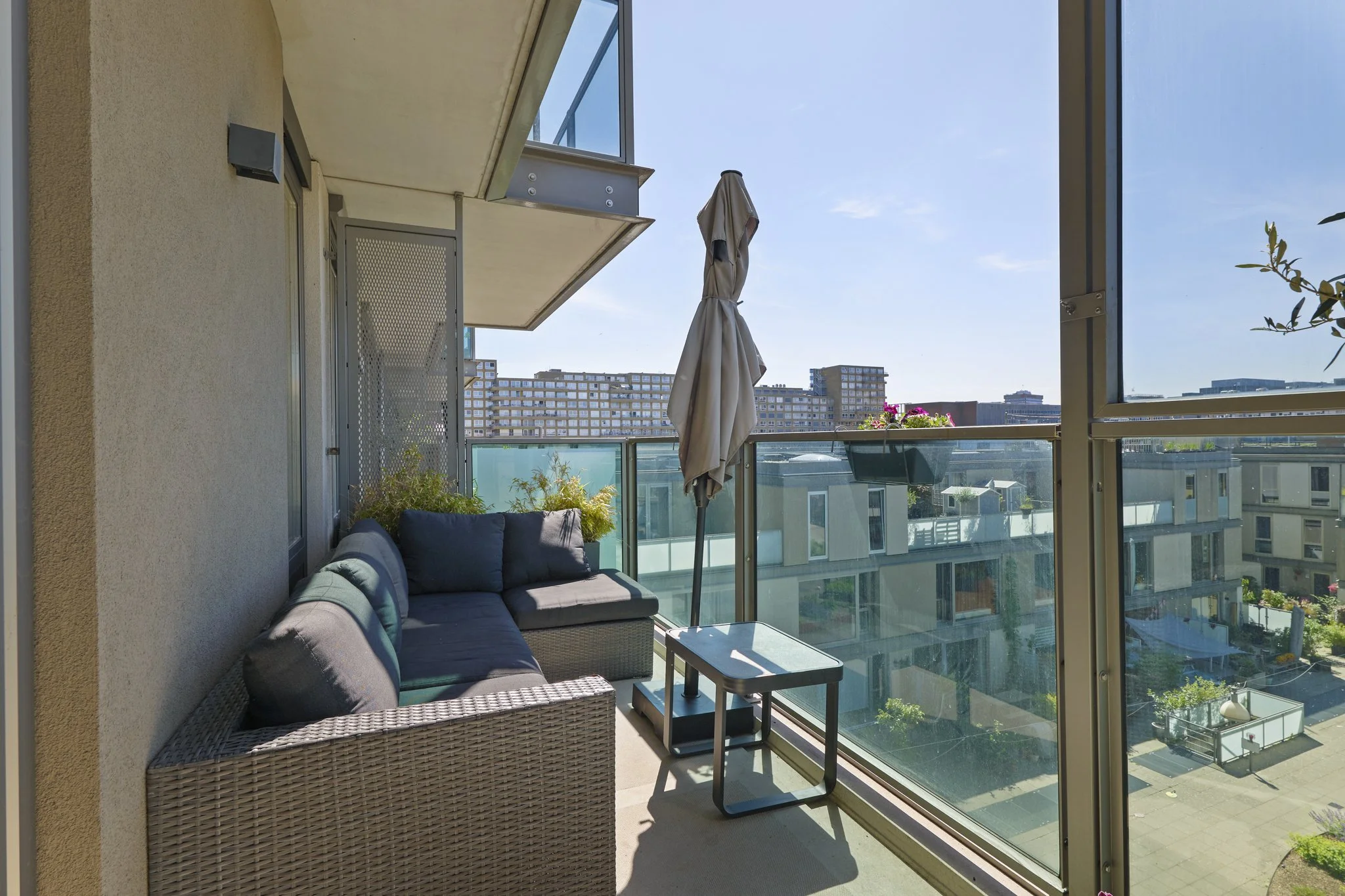 Modern and bright corner apartment with 2 bedrooms of approximately 97 m² on the fourth floor of the well-maintained complex 'Laan van Spartaan' in the lively Amsterdam-West. The house has a spacious living room with an open kitchen, which together form the heart of the apartment and provide direct access to the sunny south-facing balcony of over 10 m². Thanks to the efficient layout, every square meter is optimally used. The apartment also offers the comfort of a private parking space, excellent heat and sound insulation (complex completed in 2013), and an external storage room of 4.3 m² for extra storage space.