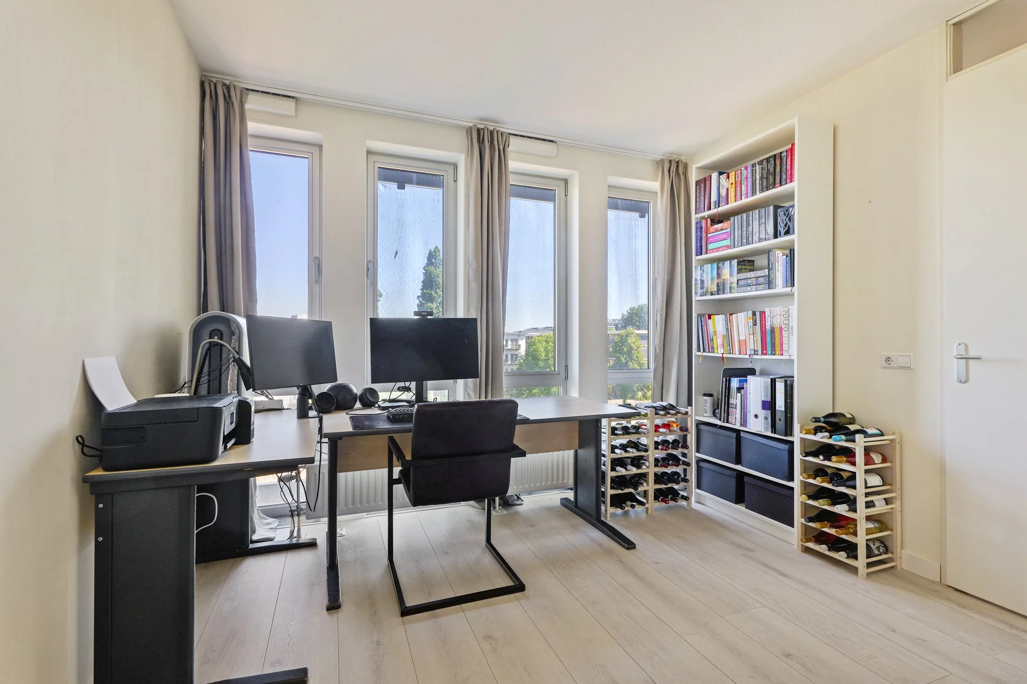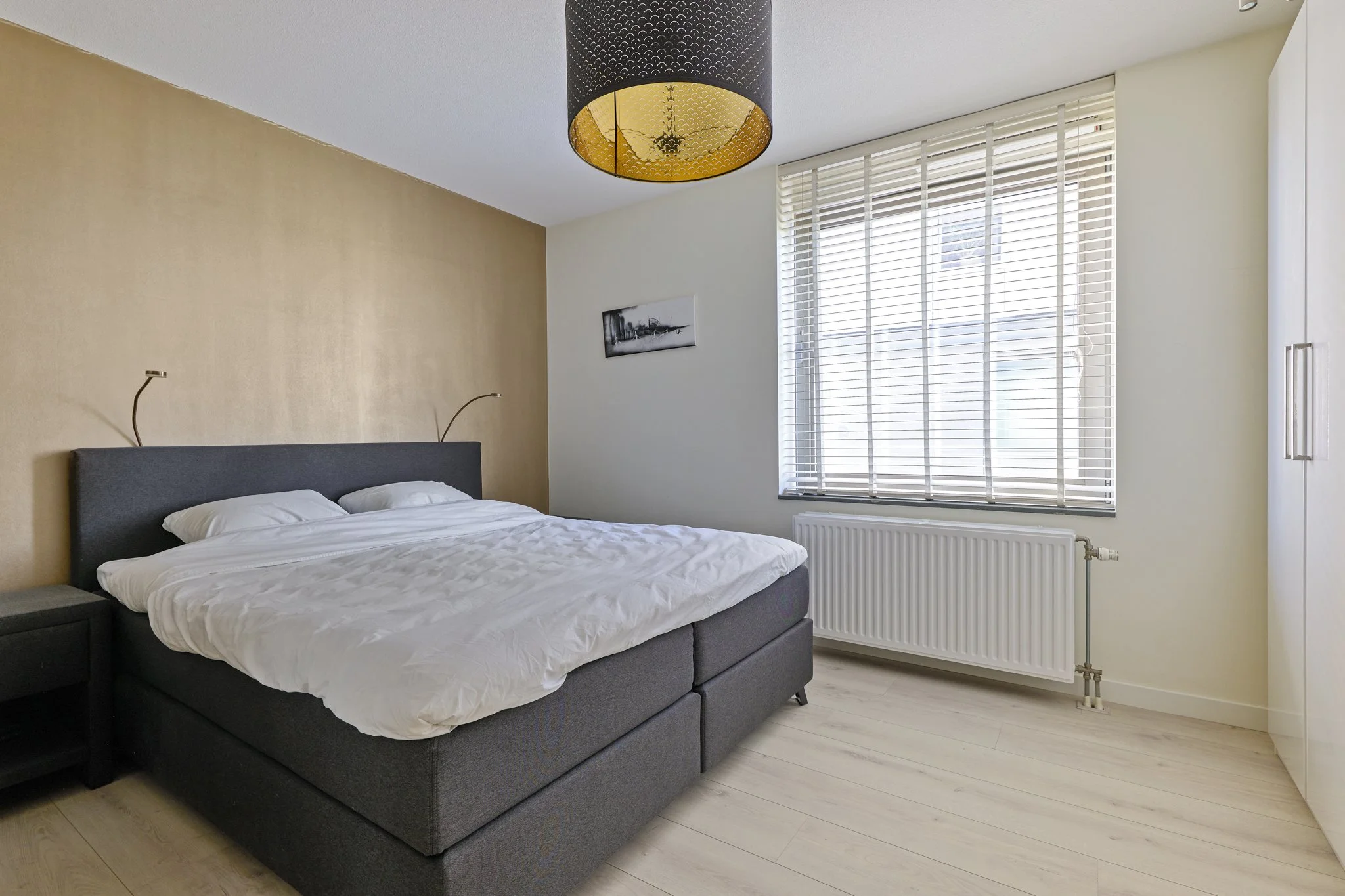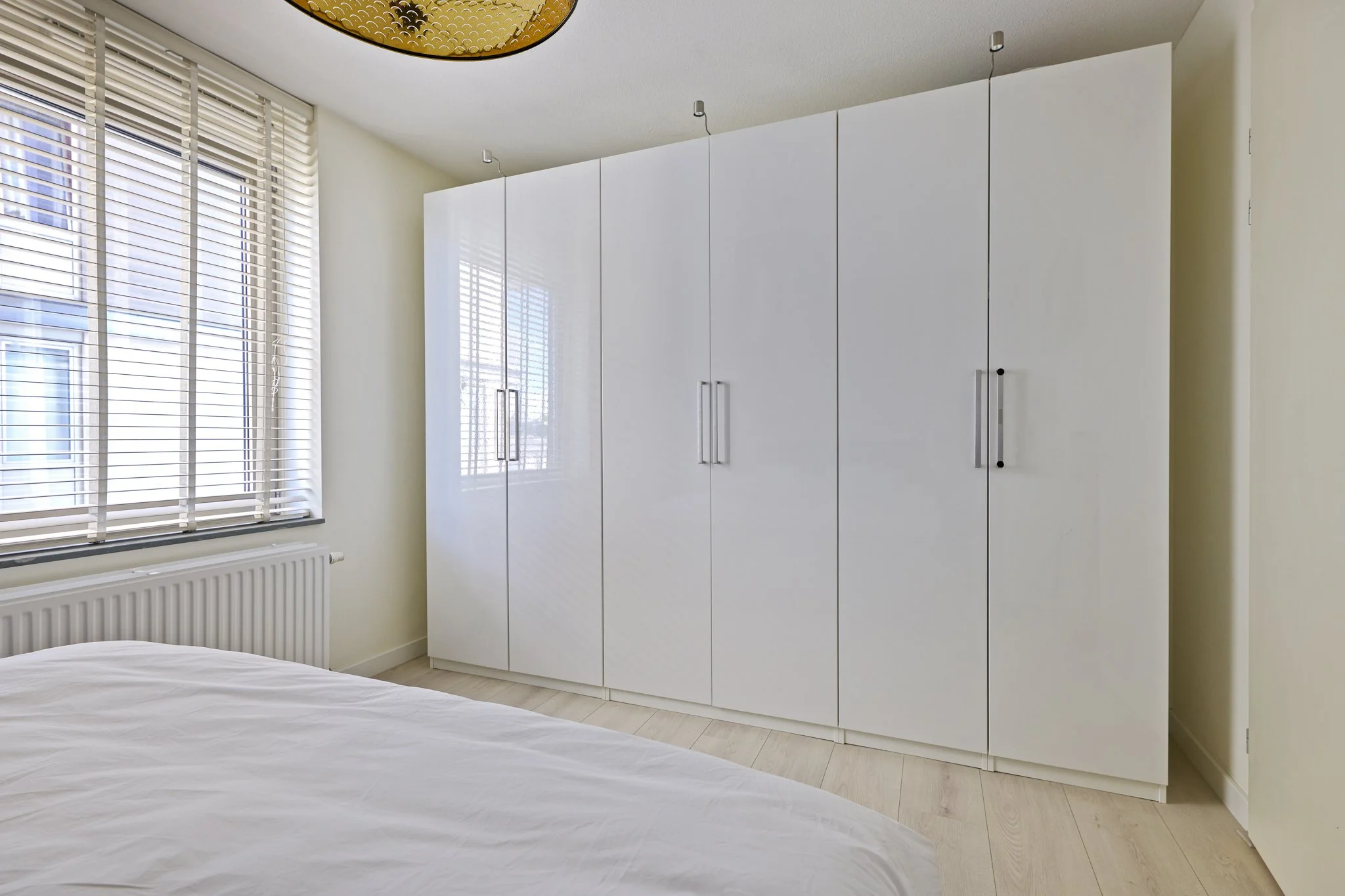 De woning beschikt over twee goed ingedeelde slaapkamers. De ruime hoofdslaapkamer biedt voldoende plaats voor een groot bed en een grote kledingkast. De tweede slaapkamer is eveneens licht en wordt momenteel gebruikt als thuiswerkplek, maar is ook perfect geschikt als kinderkamer, logeerkamer of hobbyruimte.